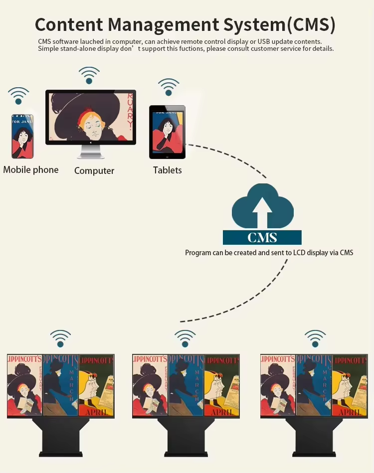 Sa tabi ng 4K 49 55 65 75 pulgada na triple screen panlabas na komersyal na advertising na video player IP66 hindi tinatagusan ng tubig, ang TopAdkiosks ay isang mga tagagawa ng mga produkto ng LCD na may malakas na mga kakayahan sa pananaliksik, ang kumpanya mula nang ito ay umpisahan, na nakatuon sa pagbibigay ng mataas na kalidad na hardware at software, ituloy ang isang panalo-win kooperasyon para sa lahat ng mga customer, ay kasalukuyang isa sa nangungunang propesyonal na multimedia display terminal na tagagawa sa China. Pangunahing nakatuon ang HTDSD sa mga machine ng advertising, mga touch screen inquiry machine, electronic whiteboards, multimedia network ng mga sistema ng paglabas at iba pang mga produktong display ng terminal.